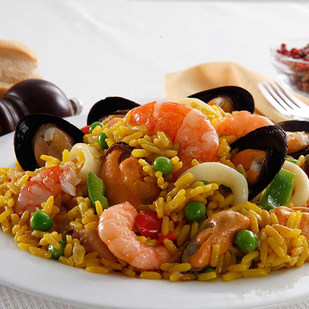 Características: Clásica Paella con riquísimo arroz y con mejillones, camarón, almeja y calamar. Producto de rápida preparación, lista en 7 minutos.